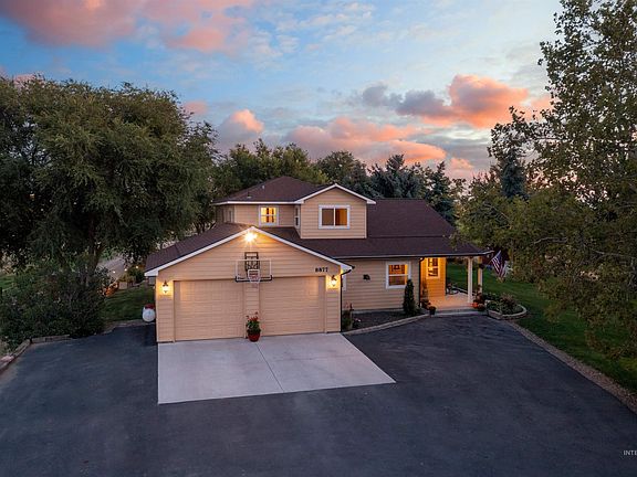 This home is truly a winter wonderland right now! Five acres on top of your very own hill! This property has it all and then some; quick access to town, but privacy and space for your own little farm. Four outbuildings including horse stalls, a 25x20 shop with power, a luxury chicken condo and a fenced dog run with a huge dog house. New HVAC, new water heater and views for days. See wildlife deer, foxes, coyotes, rabbits, hawks, osprey, great horned owls. Lots of trees. corral, asphalt, fully fenced, auto irrigation sprinklers, radiant heated floors and metal roofing on all outbuildings. This home and property is turn key and ready for you to make smores at the firepit while you take in the sunset and listen to the wildlife all around.