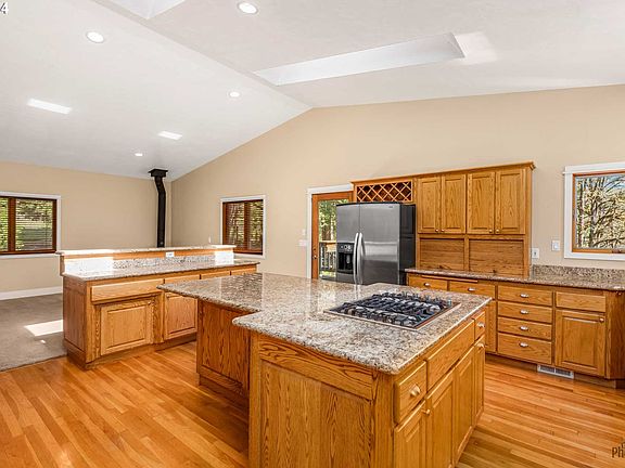 A quiet and private setting only minutes from town! This amazing home on 25 acres features a spacious kitchen with Corian countertops, pantry, vaulted ceilings, and breakfast bar. Also features a great family room with wood stove, formal dining and living room, large owners suite with walk-in closet and an office or 4th bedroom on main level. Outside you will find a large deck overlooking the peaceful surroundings, detached 24 x 23 shop with attached car port, RV hook-ups, RV carport, fenced pasture, timber, orchard with apple, plum and pear trees, and year-round creek. Only 16 minutes to River Bend hospital. Highly desirable location!!