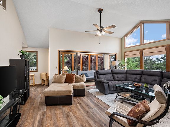 - Features: Bay Window, Ceiling Fan, Fireplace, Vaulted Ceiling, Vinyl Floor, Wallto Wall Carpet