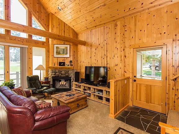 Chalet-style home with direct view of the Ridge Golf Course in Eagle Crest. T&G knotty pine wall and ceiling surfaces along with log structural members, staircase balustrade and loft railing establish a charmingly rustic feel. Double-tier windows in the two-story great room and a full-width deck face the golf course. Corner wood-burning fireplace. Galley style kitchen w/ pass-through to breakfast bar w/ raised eating surface. Master suite has jetted tub. Hot tub included. Electric heat pump.