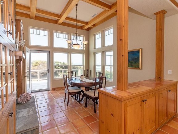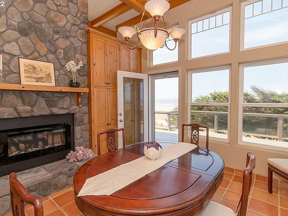 A rare gem! This oceanfront home displays timeless design, 3 car garage, expansive decks, & shingled exterior. Also included is a very rare adjacent oceanfront lot. Leaded glass door entry to find stunning ocean views, stylish finishes, & coffered ceilings. Kitchen has an attractive layout w/quartz counters and pantry. Simply peaceful, the main bdrm includes attached office, walk-in closet, dual sinks, & walk-in shower. Lower level with lg living space & ensuite bdrm. One of a kind opportunity!