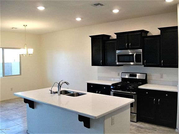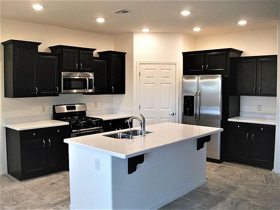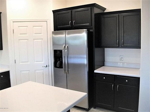 This popular great room plan features large inviting kitchen with attractive finishes,you'll enjoy entertaining w/ island/breakfast bar, and spacious dining area. Double Espresso Birch cabinets w/Staggered uppers & Crown molding. Quartz kitchen counter tops, Stainless steel appliances, including refrigerator! Separate library or home office! Lots of stunning ceramic floor tile. Soaring 9' ceilings! Washer/Dryer included! Generous master suite with large walk-in closet! Separate tub/shower. Executive height cabinets & dual sinks in master AND hall bath! Fully finished garage with opener & remotes. Radiant Barrier! Tankless water heater! Soft water loop! Taexx Pest control system! Covered patio and North facing back yard! Energy Star Certified! Builder Warranty! - Ready now.