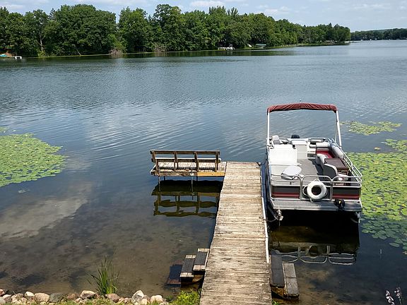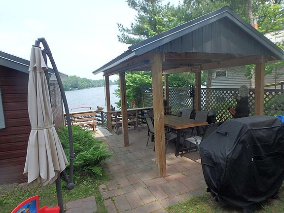 Summer Getaway! Swimming and fishing for family fun. Imagine sitting at your Dock or Pergola sipping coffee or a cold beverage with a great fantastic Lakeview watching the kids or company swimming or catching fish right from the dock. Cute, well-done Cabin close to the water's edge and a fantastic view of the lake. Furnished for immediate enjoyment. RV included for separate company sleeping quarters. Close to small towns of Cumberland, Turtle Lake, and Almena, Simple living and potential for a rental income.