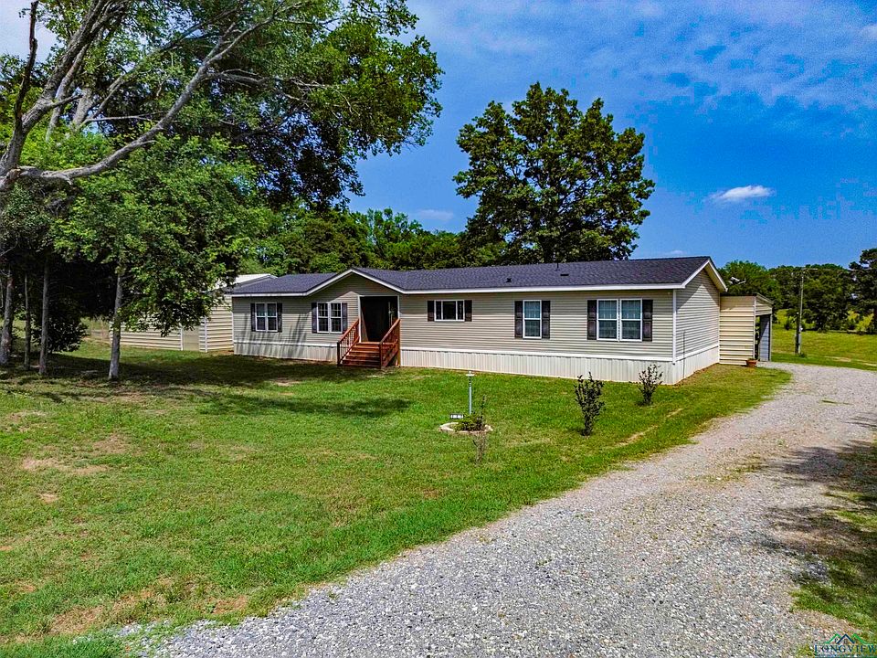 Stunning 4-Bedroom, 2-Bathroom Home This 2020 model Kabco home is truly a top-quality residence, offering exceptional features throughout. With sheetrock walls and a stunning quartz bar countertop, it exudes both elegance and functionality. The upgraded walk-in master shower, complete with a rain showerhead and wand, provides a luxurious spa-like experience while the master bathroom features a large garden tub and his-and-her sinks. The 2nd bathroom has his and her sinks also, as well as a shower/tub combo. Living room is very spacious, and has a beautiful fireplace. The kitchen has been upgraded with a modern sink and faucet, while the programmable water heater ensures comfort and energy efficiency. The home also boasts a nearly new composite roof (approximately 2 years old) and a pump on the water system for increased pressure. Outside, enjoy a front yard sprinkler system and a spacious, covered wooden deck with ceiling fans, perfect for relaxing or entertaining, complete with an 50 inch TV for added convenience. In addition, there’s a large 26x32 metal garage with spacious roll-up doors, making it an ideal space for a workshop, boat storage, or tool storage. The property itself offers the perfect peaceful country living. Located in the award-winning Harleton School District, this property offers the perfect blend of serene country living and modern amenities. Don't miss out on this incredible opportunity!