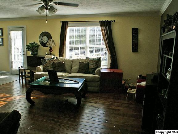 - LIVING ROOM DESC: Crown Mold, Wood Floor, Ceiling Fan