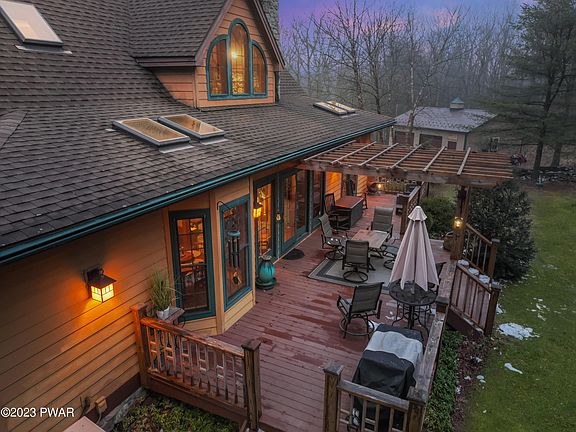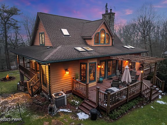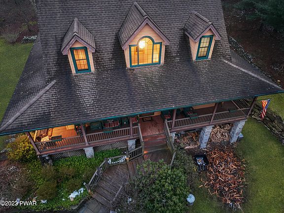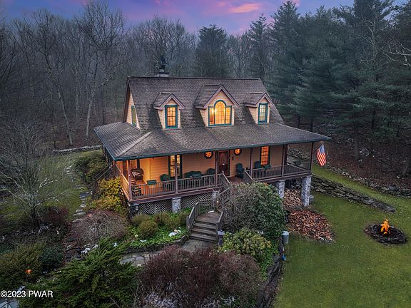 STUNNING CUSTOM-BUILT HOME WITH A 1 BEDROOM GUEST CABIN! 2.28 ACRES! RENT SHORT-TERM! Appreciate the richness of the Hardie board siding, wrap-around covered porch, stonewalls, chicken coop, 30x32 NEW detached garage, & 12x12 shed. This 3 bed, 2 full bath, & 2 half bath property boasts a great room w/ 21' ceilings & a floor to ceiling stone FP, in addition to a lower level wood stove, & back up oil heat. Eat-in kitchen w/ Viking stove, NEW fridge, & professional food warmer hood. Formal dining! 1st floor primary suite w/ WIC, skylights, & private door to back porch w/custom pergola. Finished basement w/ porcelain wood-look flooring, french doors, & a 54'' commercial beverage fridge with LED lighting. Central A/C! French Drains! Security! Seamless gutters! Free 1-year warranty!, Beds Description: Primary1st, Baths: 1 Bath Level 2, Baths: 1 Bath Level L, Baths: 1/2 Bath Lev 1, Baths: 1/2 Bath Lev L, Eating Area: Formal DN Room, Eating Area: Dining Area, Eating Area: Modern KT, Beds Description: 2+BED 2nd