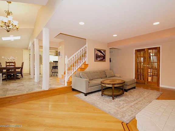 Sits on close to an acre of land. Modern light and bright 4 bedroom, 2 full bath home in great part of Holmdel. Newer Kitchen with granite counters, island and SS appliances, newer two bathrooms with marble stone. Large heated, salt water pool. 2 zone central air and heat. New siding, too many great features to list. First floor features beautiful dining room, newer kitchen with granite and stainless appliances. Large kitchen window overlooks park like backyard with in ground pool. Large one bedroom with several sky lights and sliders to paver patio overlooking large heated salt water pool. New bathroom with modern marble stone. Second floor features master bedroom with large walk in closet, additional 2 nice sized rooms and updated main bath with modern claw foot tub and marble stone.