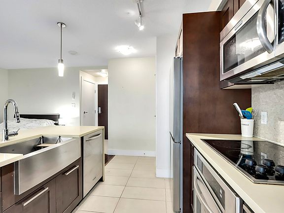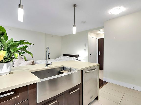 Welcome to the Beasley! Attention first time home buyer's, investors and dog owners. Bright, open concept, functional corner studio with stunning city views. Large kitchen, full size stainless steel appliances, shaker cabinets, and grand island for entertaining. Spacious living area for a king or a queen bed, sofa, and TV/media. Bright corner solarium can be used for extra storage or office/workstation. The Beasley offers a concierge 24/7, fitness center, party room (pool table, kitchen, tv's), & Vancouver's only very convenient doggy deck on the 8th floor. Unbeatable location, steps to Robson Street, and Yaletown's finest restaurants and shops. Great starter home and/or investment property.
