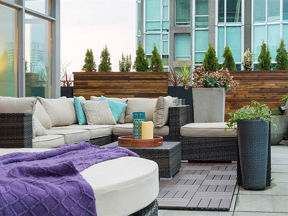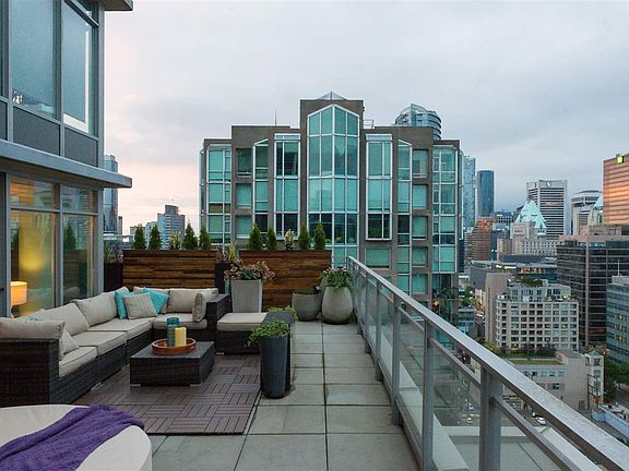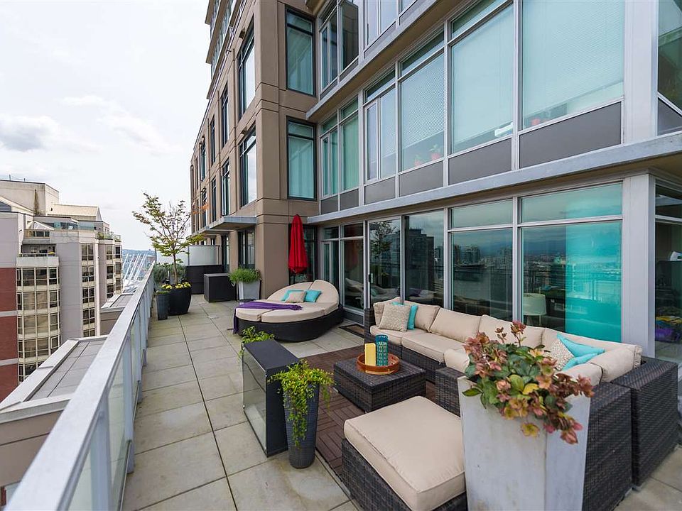 Welcome to Downtown Vancouver's most exquisite patio home, perched 28 floors above Homer Street! This 800SqFt outdoor oasis offers unobstructed & sun-drenched North/West views. The 1,015 SqFt 2 Beds + Den home offers a huge central living/dining area that opens up onto your patio which is ideal for entertaining in small or large numbers. Segregated bedrooms on either side of the unit keep the privacy while your den is easily large enough for an office, single bed or the new born nursery! 2 baths & a large storage room & Control 4 to support day to day living plus secure parking & storage locker. Take advantage dog park, gym, 24/7 concierge in a solid building with pets and rentals allowed. The epitome of the Vancouver lifestyle with everything right at your doorstep SHOWINGS BY APPOINTMENT