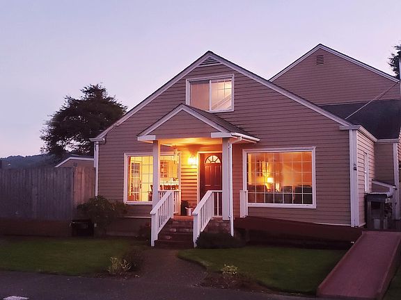 This charming Ferndale home is located on a quiet street in the Victorian Village of Ferndale. Home features include an open floor plan with a large kitchen and dining area, wood stove, and a downstairs master suite opening up to a private deck and hot tub. Enjoy the large deck and beautifully landscaped side yard adjacent to the separate guest house. The family/sunroom overlooks the large back yard with pastoral and mountain views. Over-sized garage includes a shop area and covered car port area for RV with hook ups.