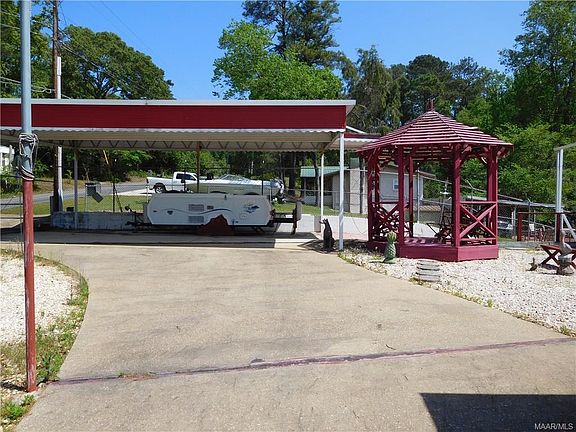 A unique property situated on Lake Jordan. Two parcels which include a Mobile Home with an add on building that features a large party room for entertainment. Two story with porches on the back for beautiful views of the lake. A pavilion for entertainment. The community offers boat and RV parking, and a dock to fish. There is a bedroom on the lower level and a storm shelter for added protection. $30.00 yearly fee for use of the play ground and tables and dock. Boat launch available in the area.