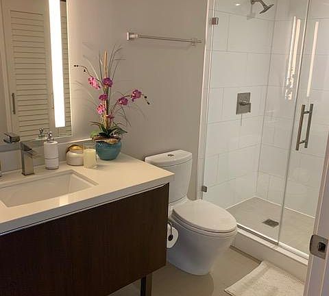Coveted, ocean facing 07 stack offering one of the largest 2 bdrm floor plans in the building. Even a dedicated laundry room (w a full size washer/dryer). Large studio becker kitchen w many of the appliances unused. Large master suite and XL master bath, offering dual sinks, a large tub, as well as stand up shower. 2nd bdrm also has its own bathroom in pristine condition. Engineered wood flooring, quartz countertops, ample storage space, & 2 parking stalls (basically 1st level when you enter the parking garage up the ramp). Tons of amenities: pool, cabana, gym, movie theater. No Pets. No Smoking. No smoking. No pets. Sewer, water, basic internet/cable provided.