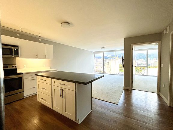 Live in luxury at the Symphony Honolulu! Available now is a dog friendly 1 bedroom, 1 bathroom, 1 secured parking, unit ready for you to move into. The unit boasts beautiful mountain views with rainbows every day. This resort style luxury condo is perfectly located in Kaka'ako with plentiful shops, restaurants, and two farmer's markets within walking distance. Enjoy shows, conventions and concerts at Blaisdell Arena and Concert Hall right across the street without having to worry about parking. The condo is only five minutes away from Ward Village, Ala Moana Shopping Center, Ala Moana Beach Park, Downtown Honolulu, Whole Foods, Salt Kakaako, Straub Hospital, Queen's Medical Center, and more! Easy and close access to freeways and major roads. The building has a Porte Cochere, 24/7 front desk/security, a spacious beautiful lobby, large mail room, bicycle and surfboard storage areas, multiple guest parking stalls and EV charging stations. Just downstairs is Velocity, Artizen restaurant, and MW restaurant on the 1st and 2nd floor. The building boasts an expansive 7th floor amenity deck that includes: - infinity-edge pool - two jacuzzi spas - pool side BBQ cabana - 4 BBQ cabanas - 2 quick grills - fitness center - sauna - veranda - multiple common area sections with wifi - karaoke/multi-media room - large social room (fits up to 50 people) with a gourmet chef's kitchen - movie theater - 24 hour dog park - treatment/massage room - 2 guest suites This spacious one bedroom has a large bathroom, a full kitchen with a kitchen island for plentiful storage, refrigerator, microwave, washer & dryer, stove, dishwasher, 55" mounted television, and central AC. Rent will cover Wifi/internet, water, sewer, and basic cable. Tenant will pay for own electric. Long term lease only, one year preferred. Dogs welcome, pending approval (Sorry, no cats! Landlord is allergic). Credit and background check with references required. Absolutely no smoking within building, only in designated areas. Contact now to schedule a showing! Renter is responsible for electric. No smoking. If tenant has a pet, only dogs allowed with approval, no cats. Pet deposit fee may be charged. Dogs larger than 40 lbs must be a service animal or ESA certified per building policy. Dogs will be approved on case to case basis. Unit was professionally cleaned for tenant and will be expected to be returned at the same level of cleanliness to receive as much security deposit back as possible. Unit is cable ready, tenant must provide own cable box.