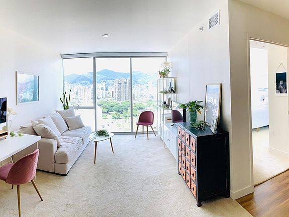 *Available July 1st, possibly a few days earlier. Symphony Honolulu fully furnished, spacious one bedroom unit. Bright and airy with floor to ceiling windows and beautiful mountain views. Full kitchen with dishwasher, stacked washer and dryer, central air conditioning, furnished with a large comfortable couch, queen bed, table & 4 chairs (not pictured), bookshelves, tv, dresser, kitchen island. One covered parking spot in secure garage. Tenant pays electricity. Other utilities (WiFi/internet, cable, water/sewer) are included in the rent. Newer luxury building with 24/7 security and resort-like amenities: pool, two jacuzzi hot tubs, fitness center, private cabanas with grills, social room with catering kitchen, theater, karaoke room. All amenities may be reserved for private use free of charge. Two restaurants downstairs, central location with easy freeway access, and walking distance to Ward Village, Whole Foods, SALT in Kaka'ako, Ala Moana Center. Close to Straub and Queens hospitals. Owner pays for Wifi/internet, cable, water, sewer. Tenant pays for electricity. Renter's insurance required. No pets, no smoking anywhere on property. No subletting. Available 7/1/25, possibly sooner. 1 year lease. Credit/background check & landlord references are required. *Currently showing by request, please share a bit about yourself - your job, credit score range, who will be living with you, your ideal start date and lease length. Mahalo!