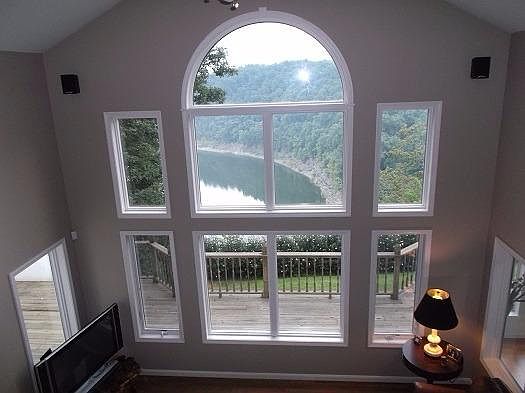 NEW PRICE!Expansive lake view from 3 levels of living space. Large rooms with lots of windows take in the lovely outdoor space. Main floor master suite and large open great room make for first floor easy living. Off of the kitchen/dining area there is a bright sunroom that leads to the open deck and open year round gorgeous view. Upstairs there are two large bedrooms and a full bath.The lower level walk-out has two more guest bedrooms and a full bath plus a huge family room/game room. Off of the lower level is a spacious screened room also with lake view. Immaculately kept, you'll this lake home in a community that has a pool and tennis courts and only a few minutes to the Jamestown Resort & Marina. Great Price!!