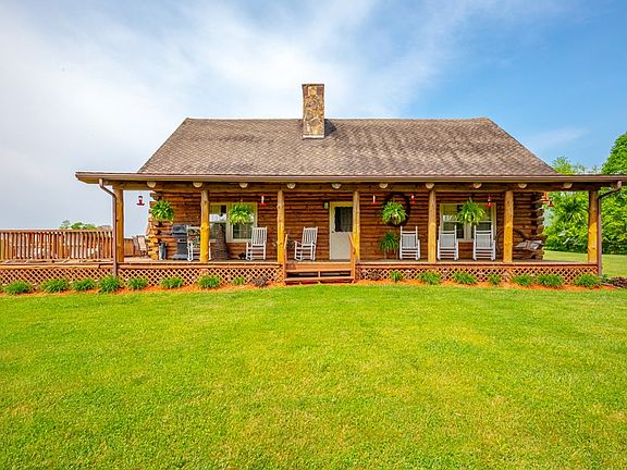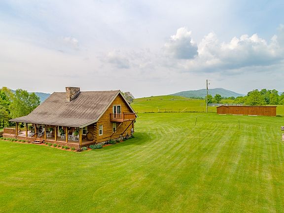Custom Built Log Home situated perfectly on 35 acres to enjoy the mountains. Roughly 5 acres are cleared around the house allowing plenty of natural light throughout the house. The remaining acreage is woods providing the privacy and wildlife most people move to the mountains for. The pine logs are hand peeled with tongue and groove from upstate New York. The living room, dining room and kitchen are open with cathedral ceiling and a large stone fireplace. The kitchen offers countertop seating, an abundance of cabinets and an island with oven/range combo. The master bedroom is on the main level with his and her closets. Laundry room is also on the main. Upstairs is an open loft with a sitting area, bedroom, full bathroom, 2 closets and balcony to enjoy the mountains. Downstairs is a full basement which half has been finished as a family room/bedroom, brick fireplace, woodturning stove and bar with mini fridge. The other half is unfinished and currently used as a workshop.