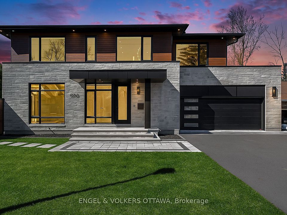 Stunning custom-built home in Glabar Park! Its stone façade and elegant symmetry define the home's architectural presence, offering exceptional curb appeal. The spacious entryway with a double cloak closet and 3 x 3 glossy porcelain tiles welcomes you to this 3-bed, 4-bath modern 2-storey home offering 2,488 sq. ft. of above-grade living space. The open-concept main floor living area showcases 9' ceilings, wide-plank hardwood floors, and floor-to-ceiling windows. The chef's kitchen includes quartz countertops, custom cabinetry, a dedicated prep/bar area, and premium appliances, including a Decor built-in fridge and gas cooktop. The living room features a gas fireplace and direct access to the private side yard. A separate and private front-facing home office/den offers a living space separate from the rest of the home, while a full laundry room with direct garage access allows for maximum convenience. Upstairs, the spacious primary suite boasts an ensuite with a soaker tub, glass shower, dual vanity, and a walk-in closet. Two additional bedrooms each include walk-in closets and share a full bath. The finished basement offers a main recreation room with a wet bar, an additional room ideal for a home theater or gym, a 3-piece bath, and numerous storage spaces. Additional features of this home include in-floor radiant heating (basement + baths), smart home automation capabilities, a built-in sound system throughout all rooms and living spaces, automatic blinds, a GenerLink hookup, hybrid fencing for privacy, and a rough-in for an EV charger. Located on a premium corner lot in one of Ottawa's most convenient family-friendly neighbourhoods, this home is surrounded by mature trees and well-established homes, with a peaceful residential atmosphere. You'll benefit from proximity to Westboro Village, the Jewish Community Centre, Carlingwood, access to bike paths along the Ottawa River, and the 417 which makes going anywhere in the city seamless. Some photos virtually staged.