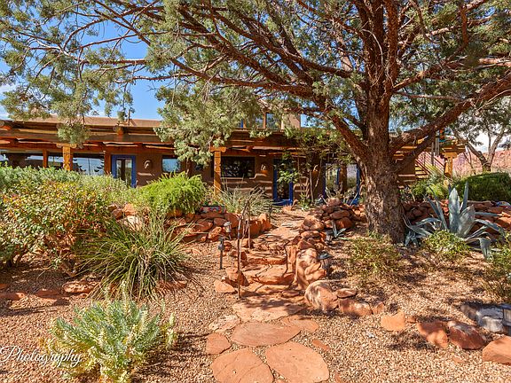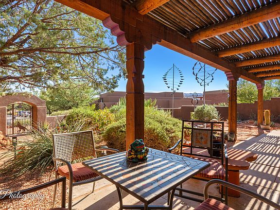 888 Coyote Gulch Court offers the perfect blend of intimate, low-key desert living and high-functioning base camp flexibility for guests and family. The main house features main floor owners' quarters: family room, kitchen, laundry, primary bedroom, bath, guest bedroom, and a huge great room with wet bar and room for office, media, studio or whatever you heart desires. Upper level is a studio apartment with separate entry, Full bath, kitchenette, and fantastic views from the upper deck. The detached Casita was built in 2015 and includes a great room, a full kitchen, a generous primary bedroom with an Ooh La-La en-suite bath. Outside, lush courtyards abound. Mature landscaping and artful southwest details make this a rare find. If there is a unicorn in Kayenta...this is it. Perfect for artists or owners looking for live/work studio space and rental income, or adventurous owners with friends and family who love to explore all that our area has to offer. A world-class hike just steps from your door, a trip to the north rim of the Grand Canyon, fishing in the Dixie National Forest, or a glam trip to the Sphere in Las Vegas. Kayenta offers unmatched recreational accessibility to some of the country's most breathtaking landscapes.