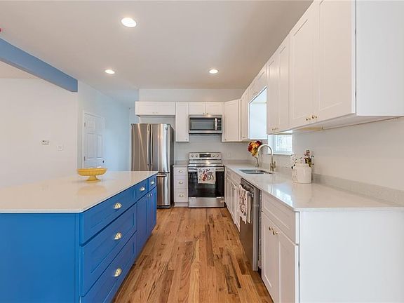- Kitchen Features: Breakfast Bar, Eat-in Kitchen, Kitchen Island, Cabinets Other, Cabinets White