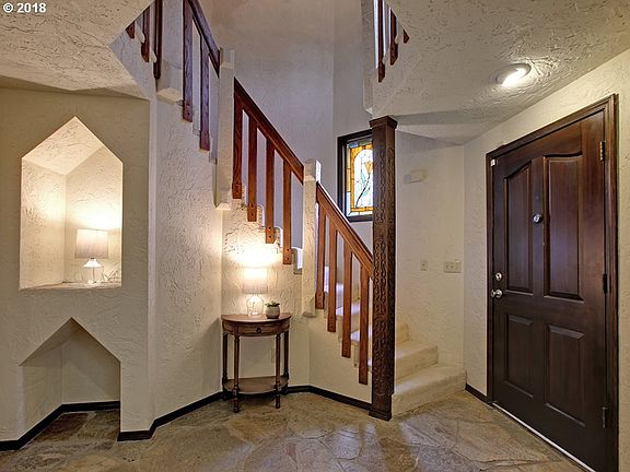 Merewood! Beautifully Remodeled w/ Master Suite-on-the-Main on Gorgeous 0.48 acre private lot. 3,799Sq.Ft., 4 Bedrooms+ Den/Loft + Bonus, 3 Full Bathrooms! Amazing architecture features Turreted Entry, Spiral Staircase, Alcoves, Carved Beams and Tongue & Groove Ceilings. Surrounded by mature landscaping w/ pathways, Deck, Spacious Aggregate Patio w/ Built-in Bar-B-Que & Bench, Raised Garden Beds & Shed. Circular Aggregate Driveway!