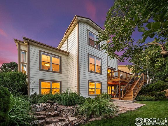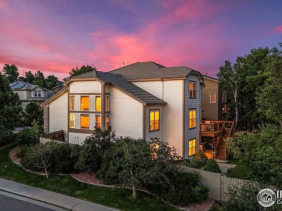 SEE THE PEAKS FROM THE DECK! A home that has the ideal location, lot, floor plan and square footage this home has it all! The oak hardwood foyer welcomes you with its grand staircase upon entering this beautiful home. The main floor has carpet throughout, in the formal living and dining areas, as well as the family room, with the exception of the tile in the updated eat-in kitchen. You'll find all stainless steel appliances, complete with granite countertops, tile backsplash, a breakfast bar and a cooktop and double oven. The office on the main floor has french doors and carpet for a nice, comfortable feel, half bath plus the laundry room with tile floors, sink and granite countertops. New intercom system in every room. Upstairs features a primary room with 5-piece en-suite bath and walk-in closet, three additional spacious bedrooms and one full bath with tile, granite and a skylight. The fully finished walk-out basement with recreation room, electric fireplace, a full wet bar with granite, mini frig and microwave. Extra storage if needed in mechanical room with sink. Walkout basement offers access to covered patio and flagstone patio to enjoy peaceful waterfall. Beautiful backyard with mature landscaping, sprinkler system, and stairs that lead to the upper deck. Oversized 4- car garage has plenty of storage. NEW Exterior PAINT. Easy access to Denver, Boulder and DIA. Open space, parks and paths surround this amazing home. Short distance to Superior Elementary, community pool and tennis courts.