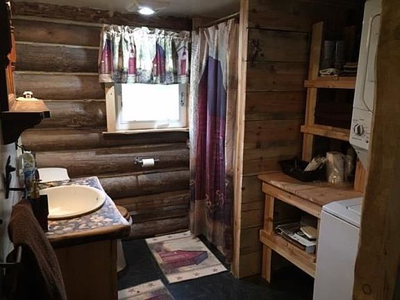 Great little log cabin that is as cute as it could be. Interior is great, must be seen, acreage is 8.783 acres. There is a gas right-of-way line that runs across property.