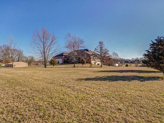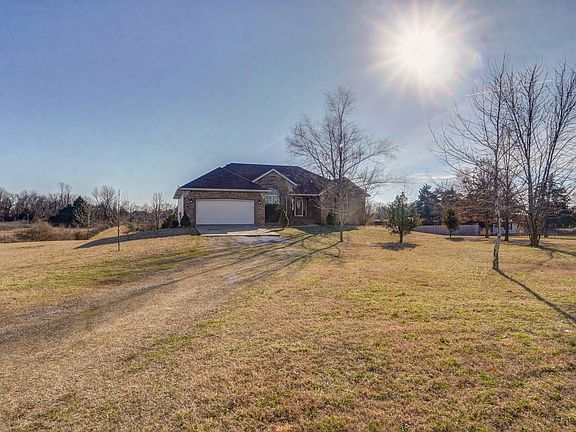 Gorgeous setting. Finished 5 bedroom walkout basement home on 3+ acres with pond and room for shop in Ozark Schools! The exterior offers a country setting, close to 65 Hwy, covered front porch, large covered deck with view of the pond, large patio with pergola & huge free-standing outdoor stone fireplace, front & back landscaping, a variety of trees & bushes, shed and gently rolling back terrain. The inside shows well... with the main floor hosting wood & carpet floors (mostly), 3 bedrooms, 2 full baths, dedicated laundry room, split floor plan, formal dining room with crown molding - wood floors, living room has carpet - crown molding - raised ceilings - gas fireplace, entryway hosts coat closet - wood floors - raised ceilings. The kitchen dining area is good size...hosting lightly stained stacked cabinets, black & stainless appliances, wood floors, cut-through window, plenty of cabinet & countertop space. The master bedroom & bathroom provide a large bedroom with carpet, split windows with a view, double tray ceiling, canned lights, ceiling fan, double vanity , tile floors in bathroom, corner jetted tub, walk-in closet, walk-in shower, and a private feel. The finished basement hosts a huge family room with wet bar & mini fridge, large storage closet with double doors, recreation area with laminate floors, storm shelter, 2 full bedrooms, full bath with tub/shower, and good size mechanical/storage room. The home and property show very well. Must see!