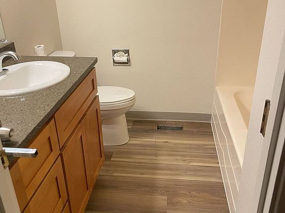 Private yard, duplex New kitchen cabinets, flooring: new carpets in bedrooms Wood floors New bathroom cabinets Granite counters Landscaping included for front yard Large, single car garage Gas fireplace in living room Large master bedroom Inside utility room Large hall closet New Appliances: DW, range, refrigerator Water/Sewer included in rent. Sorry, no pets