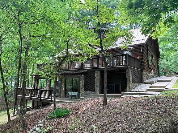 WHAT.A.GEM!!! Nestled on desirable White Oak Mountain, this gorgeous log cabin epitomizes rustic luxury, offering breathtaking views on .87 acre. This cabin showcases stunning craftsmanship w/exposed beams, a grand stone gas-log fireplace. Step inside, an open-concept living/dining/kitchen area welcomes you w/sunlight streaming through the windows, framing the mountain peaks. The home offers 3 bedrooms, 2 & 1/2 baths, office space, full finished walk-out basement w/woodburning stove, & a fabulous sunroom! Enjoy front & back decks inviting you to bask in the beauty of nature, entertain guests in fresh mountain air & enjoy sights & sounds of Shunkawauken Waterfall. The Association: pristine fishing ponds, Pavillon for community/private parties, encouraging a great lifestyle right at your doorstep. Use as a year-round residence or a charming getaway, this is the ultimate nature retreat, promising unforgettable memories & a deep connection to the natural world. New HVAC & so many updates!