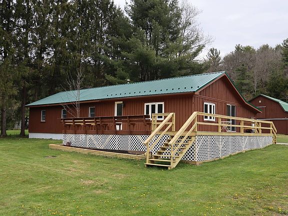 Have you ever wanted to own a ranch? How about a ranchette with all the accompaniments of a large farm, but in a smaller package? Live in your country home away from the bustle only halfway between Corning or Dansville. If you are a commuter, convenient access to I-86 and the 390 is mere minutes away, and you can return to clean quiet country air at a days end. This property is ready made to move in with a large 59' x 51' barn suitable for horses, cows, a kennel or storage for boats, ATV's and equipment. There are many options here to convert it to a business too. The barn has multiple stalls and extra storage space for equipment as well as an upper 36' x 28' loft for hay or more storage. Wired for electricity and having a poured concrete floor in the main lower level, dry and secure space is available for storage and keeping the facility clean. The home is a mobile home of approximately 1,624 Square feet with three large bedrooms with one full 15'11 x 6'10 bath and a 5'9 x 3' half bath, and a roomy 16'7 x 9'4 serve over kitchen. A new never used gas stove included as well. Family space is ample with a 19'8 x 11'3 family room, a 21' x 13' Living room and an add on 26' x 11' Rec room. The central family room is home to a brand new coal furnace and a mantle that warms the entire house with that feel good heat that reaches your bones. A large front wrap around 35' x 7' and 32' x 12' deck affords plenty of space for barbequing and entertaining or just enjoying the open air and breeze under the white pines. Two state forests are less than a half mile away for expanding your country living lifestyle or enjoying the fall deer hunt. Watkins Glen is 40 minutes away and you are only minutes to the finest wineries in Steuben County and 12 minutes south of Keuka lake. Approximately half of the property is tillable for, crops, gardens or can be left as a pasture for livestock. Priced to sell with so many options, and perfectly located, this one is surely a special property ready to go.
