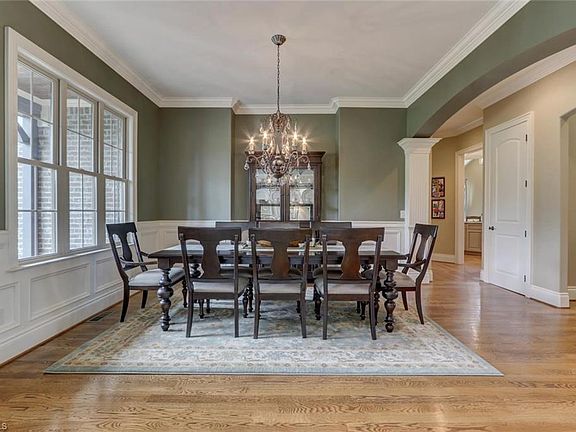 Beautifully detailed custom home built by Brian Disney w/ heavy moldings, spacious entry, rich hwds, arches & custom built-ins. The 20' X 17' main level owner suite stands out w/deep trey ceiling & sitting/home office area. Lg kitchen w/double ovens, 5-burner gas ctop & bar seating. The keeping room provides additional TV & work-at-home space. 2nd floor en suite bedroom, two additional BRs w/Jack & Jill bath & lg bonus . Open air rear porch w/fireplace - great for wine-downs. Community Pool