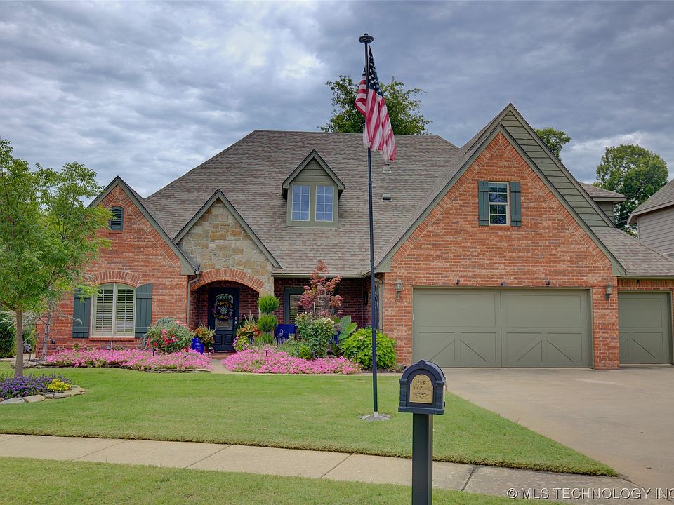 Beautiful home in desirable Legacy Park with neighborhood pool and parks! 4 bed/ 3 bath, formal living/office downstairs, hardwood floors, formal dining room, living room with built-ins and open to eat in kitchen with leathered granite counter tops, Hoshizaki top hat ice maker and convection oven. Two bedrooms downstairs. 2 beds upstairs with Game room and 2nd office/craft/study area. Safe room. Master bath with large tub, walk in shower, separate vanities and two way fireplace. Plantation shutters, new windows on back of house, 3 car garage with epoxy floors. Must see this stunning yard created by sellers who are Tulsa Master Gardeners. Backyard is perfect for relaxing or entertaining with turf for easy maintaining, newly built huge covered patio with wood- burning rock fireplace, TV, electric shades, fans, water feature, outdoor lighting, Koi pond with automatic fish feeder, shed attached to the house for easy access to tools, stamped concrete...too many things to mention!