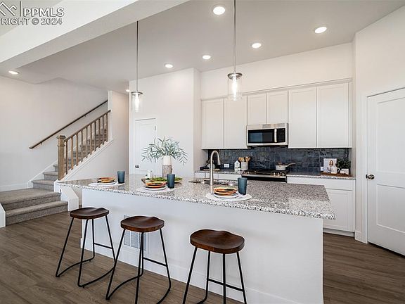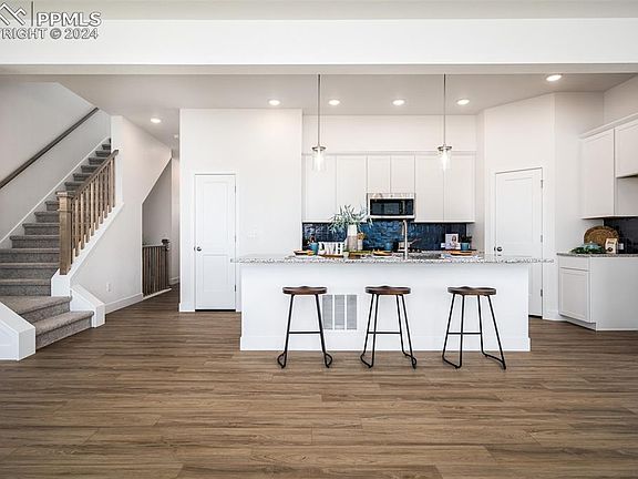 Don’t miss this brand-new Deerfield home in Revel Crossing at Wolf Ranch. Conveniently located in the D20 School District, this spectacular home with finished walk-out basement is waiting for you! The Deerfield home welcomes you with its open concept living and tons of natural light from the abundant large windows. The main level is a perfect gathering place for entertaining and features a 28-foot wide deck with amazing views! Head upstairs and you will pass through a loft area before being welcomed to your owner’s retreat which boasts picturesque windows and an abundance of natural light. Two additional bedrooms, a full bath and upstairs laundry are convenient for the entire family. A finished basement with a bedroom, bath and huge retreat area complete this home! Full yard landscaping is included.