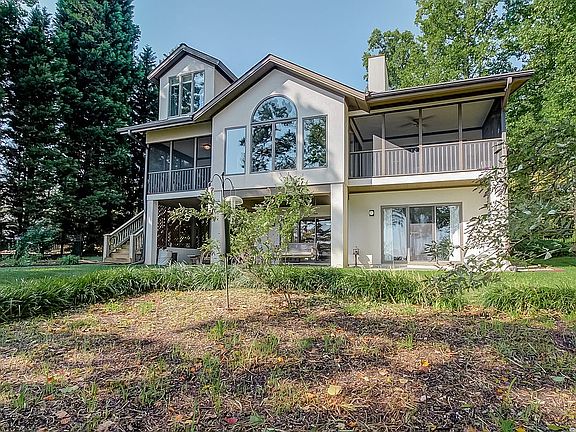 Amazing main channel home with views for miles. Wonderful contemporary with open floor plan. This home has been updated and lives big. Two story great room overlooks lake. Remodeled kitchen with huge dining area. Main floor master 2 screened porches. Basement boast family room with FP, second master, wet bar and billiards area. Walk out to the park-like yard w/ koi pond your own pier and boat house. All located at the end of a private road. A very rare LKN find. This one is all about the views!