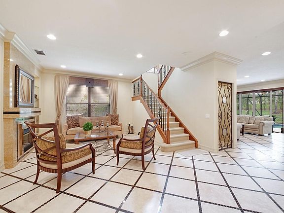 Neutral flooring, crown molding, high hat lighting, wine cellar, intercom system, smooth walls, custom window treatments, accordion shutters and exterior ring cameras are just a few highlights of this stunning home.