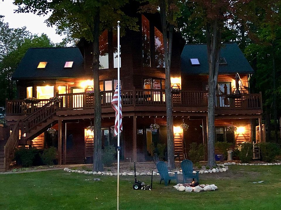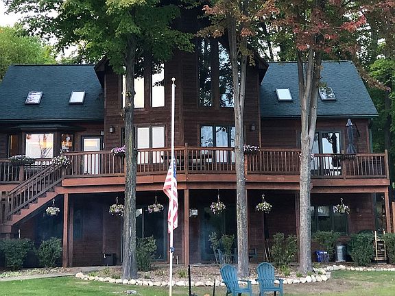 If you want the feel of Northern Michigan with a contemporary twist then this is the home for you. Home completely remodeled top to bottom in 2019. Features beautiful gourmet Kitchen, 3 Bedrooms plus loft that can be converted to fourth bedroom, 4 Bathrooms, wood floors, tongue and groove cathedral ceilings, four sided gas stone fireplace upstairs and gas stove fireplace downstairs. The lower level is a true entertainment haven for the whole family with movie theater featuring 86" big screen, full bar including ice maker and built in kegerator with plenty of room for your favorite game tables. All this on a private setting overlooking the Clam Lake just five minute boat ride to Torch Lake. Enjoy the views from the large deck or lower level patio, or in the hot tub relaxing to the music of the Loons. Home sold with option to purchase turnkey furnished minus a few items that are personal to the sellers, plus Brand new Bennington 25QSR with fly bridge and 350HP engine and fishing boat with trailer and lift.