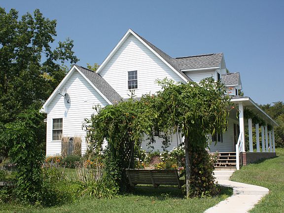 Paradise found in this private country setting, tucked away on 18 secluded acres, complete with stocked pond, wildlife, and woods for hunting! The moment you enter this custom-designed home you view the 18' vaulted ceiling and loft overlooking the Great Room. The kitchen has 42'' cabinetry, center wrap-around island with built-in sink, eat-in area and adjacent 12' x 25' sun-lounge. Large master suite opens through French doors into private bath with walk-in stone tile shower and sunken Jacuzzi tub. Step out of the Walk-Out Basement family room onto an outdoor living space with 11' stone fireplace, ideal for entertaining or watching wildlife. This 4-bedroom, 1 1/2 story home with wrap-around porch includes 3 detached structures, space for gardens, animals and recreation.