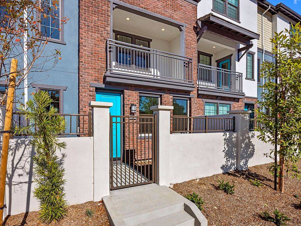 This beautifully designed, three-story, move-in ready home features a light-filled open floor plan with vinyl plank flooring throughout the entire home. A downstairs bedroom with on suite bath is ideal for mother in laws or office/game room! There is a gated private patio at the entrance as well as a deck off the living room. The large open style kitchen boasts a huge island with granite counter tops and plenty of cabinet storage space. Stainless sink and appliances include dishwasher, microwave and gas stove. Washer dryer and refrigerator also included in this home! The primary suite showcases a large walk-in closet dual-sink vanity, and shower. The second bath also has dual sinks and a tub/shower combo. Energy-efficient features include LED lighting fixtures, tankless hot water heater, AC and whole house fan. You can move in immediately to this beautiful, gated community with two separate entrances.