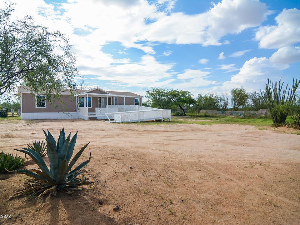 Freshly updated mobile home. Located in South West Tucson New custom interior and exterior paint. A wonderful living room with light filled living. Earth tone floors. New carpet and padding in living areas and bedrooms. New SS appliances. Split floor plan. Walk in closet in master bedroom. Wonderful lot with desert mountain and sunset views. Lots of mature vegetation. Beautiful desert landscape. Covered front porch. Back deck. Large storage shed. This home is really special.