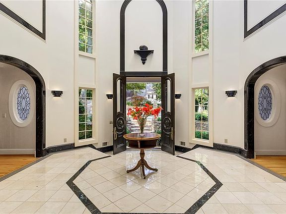This beautiful European Modern Transitional Home features rare & unique architectural detail. The magnificent old-world front doors made of nearly 200 year-old Cypress make the perfect first impression. The octagonal foyer with its arched doorways, skylight and marble tile immediately convey the home's timeless elegance. Open floor plan on the main is an entertainer's dream - the kitchen, sunny breakfast nook and family room with stunning palladium window, 2 powder rooms and laundry. Finished terrace level has 3 additional bedrooms and large family room. Gorgeous landscaping, deck and pool.
