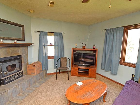 Gorgeous rural setting! Appx. an acre lot. 4 bedrooms! Lots of house and land for the money.. Needs some TLC-will not FHA. 100% conventional available-call for info. Great wood burning fireplace w/blower in Liv.room. Big country kitchen is eat-in and has pass thru..light airy! New furnace! Huge barn in back has sliding door-could be made into garage. Priced to sell