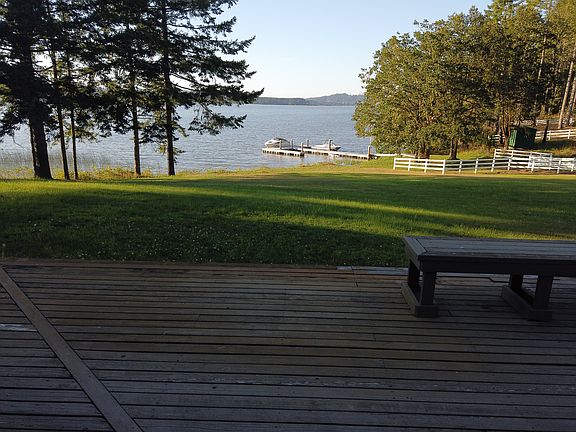 Incredible waterfront estate. 10.83 acres on the lake. One of the few private docks allowed. Very private. The shop is 32X20 has 2 levels and a concrete floor. Bedrooms are on the opposite ends of the house. The 2nd floor is an open loft with water views.