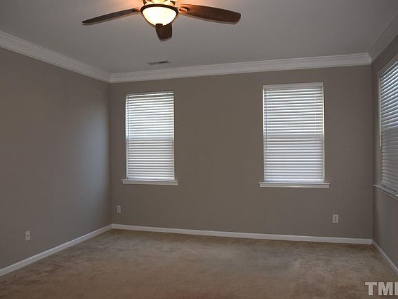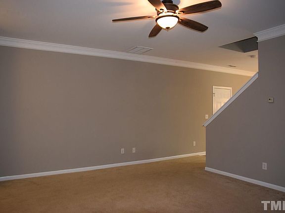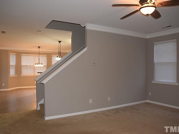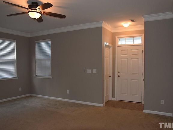 Available for 11/13 move in. 3 bedroom home with 1 car garage is only minutes from Triangle Towne Center and I-540. Includes large living room plus 2nd floor open flex room. 9' ceilings and upgraded lighting throughout 1st floor. Daylight fills the fully equipped combo dining area and kitchen with 42" cabinets, black appliances, breakfast bar, pantry and door opening to covered rear patio. Master suite includes full bath & huge walk-in closet. 1 adult pet under 25lbs w/$300 pet fee. No smoking permitted