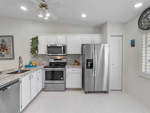 THIS STUNNING, LIGHT & BRIGHT LAKEFRONT VILLA IS TURN-KEY AND CAN BE PURCHASED FULLY FURNISHED! THE INTERIOR HAS BEEN THOUGHTFULLY RENOVATED WITH A BEAUTIFUL OPEN KITHEN AND BREAKFAST BAR, SOLID FLOORING THRU-OUT, UPDATED BATHROOMS, PLANTATION SHUTTERS, LOTS OF CLOSET AND STORAGE SPACE, AND A LARGE COVERED SCREENED PATIO TO ENJOY THE SPECTACULAR LAKE VIEWS. NO WORRYING ABOUT AN AGING ROOF, BUYER TO BENEFIT FROM A BRAND NEW ROOF, BEING PAID FOR BY SELLER. ALL OF THIS IN A PARK-LIKE 55+ COMMUNITY, COMPLETE WITH GATED ENTRANCES, TENNIS, PICKLEBALL, SWIMMING POOL, FITNESS ROOM, AND PLENTY OF WALKING TRAILS.