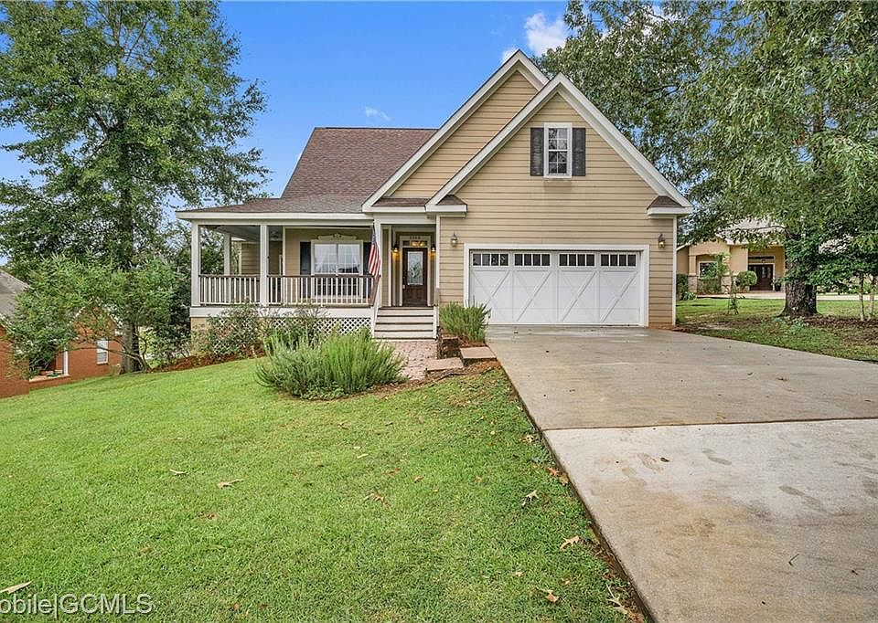 **Seller will entertain offers between $255k-$265k** One of the best sunset views in Saraland! Retreat to your choice of early morning or late afternoon sun on one of the spacious porches while still enjoying the convenient access to town. This lovingly designed home is nestled in a quiet cul-de-sac just a couple of right turns to Saraland Elementary and a quick drive to the new Publix and hospital complex. Home contains three (3) downstairs bedrooms and two (2) baths. The large upstairs bonus room is perfect for a home office, gym, guest room or family entertainment center and provides even MORE storage with a large walk-in closet. Large downstairs master suite boasts a claw foot tub, separate shower, dual vanity, huge walk-in closet and access to the back porch for morning coffee. Too many details and extra to list: granite countertops, hardwood floors, tray ceilings, crown molding, gas range, tankless hot water heater, in-home vacuum system, nugget ice machine. Garage is enclosed with an extra storage closet and utility sink. Yard is low maintenance and has three (3) different varieties of blueberries as well as a lemon tree, satsuma, fig and japanese persimmon. Fenced in back yard for kiddos and pets! This one will go fast, come see it today!!