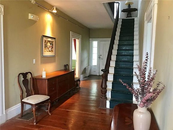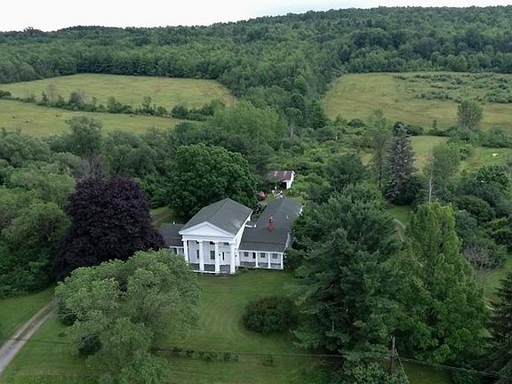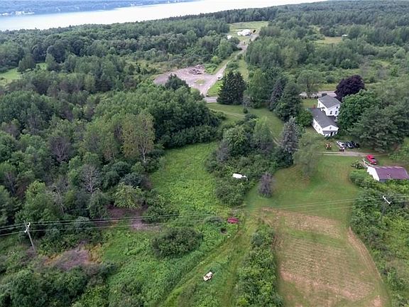 Amazing opportunity to own a 4000+ sq ft Greek Revival home on 100 acres overlooking Keuka Lake! Acreage features a pond, apple trees, many trails, and includes all OGM rights! Large estate features hardwood floors, updated electric, high ceilings, and asphalt roof replaced in 2007. First floor bedroom & laundry room. Large workshop/studio space with its own outside entrance. Stairway off dining room with woodburning fireplace leads to separate bedroom, perfect for a guest room. 3 additional bedrooms and a full bath up main set of stairs. Steam heat can be run by fuel oil or wood! Perfect location just minutes from Keuka Lake and downtown Hammondsport. Be sure to click on drone icon for video of the acreage and view!!