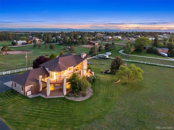 This home is truly a one-of-a-kind Custom Architectural Masterpiece! Unbelievable Pikes Peak to Longs Peak Mountain Views from inside and the 2,700 Square Feet of new maintenance free Trex type decks. The decks also have new stucco pillars with new solid stone caps! The entire 2.72 acres is fenced at the perimeter! Electric gate opened via remote control or keypad! The entire fence has thin and discrete wire so your dogs can roam free. Zoned for Horses! $150,000 in improvements! Lets go inside! Stepping into the Foyer/Great Room you will be blown away by the architectural elements, exposed beams, soaring ceilings, gorgeous brick fireplace and Panoramic Mountain Views. The Prow design at the exterior was purposefully positioned to look straight into the mountains for optimal views! To the left of the Great Room you will love the beautiful Gourmet Kitchen with Bay Window eating/dining area with incredible mountain views out every window, slab granite, double-oven, gas cook-top with beautiful updraft, Brazilian Cherry Cabinets and Floors...plus much more! To the right of the Great Room you will find the remodeled Family/Living room with gorgeous trim work, bar area with cabinets and counter-top space plus beautiful Fireplace! The huge laundry room and 1/2 bath are just around the corner. Upstairs: The Master Bedroom is privately located separately as the stairs split. This is a gorgeous Master Bedroom w/ vaulted ceilings, exposed beams, fireplace, huge private balcony/deck with AMAZING VIEWS, his & hers closets and a gorgeous 5 piece bath with mountain views! Two large bedrooms, a study and a full bath are located on the opposite side of the upper level. One of the bedrooms has private access to a massive deck! The walk-out basement is the 4th bedroom with 3/4 bath. Hot tub stays! New hail resistant roof/gutters/paint in 2020, newer stucco and stone work, new granite throughout, new flooring in fam room, new garage doors. RV's, boats & outbuildings are allowed! No HOA!