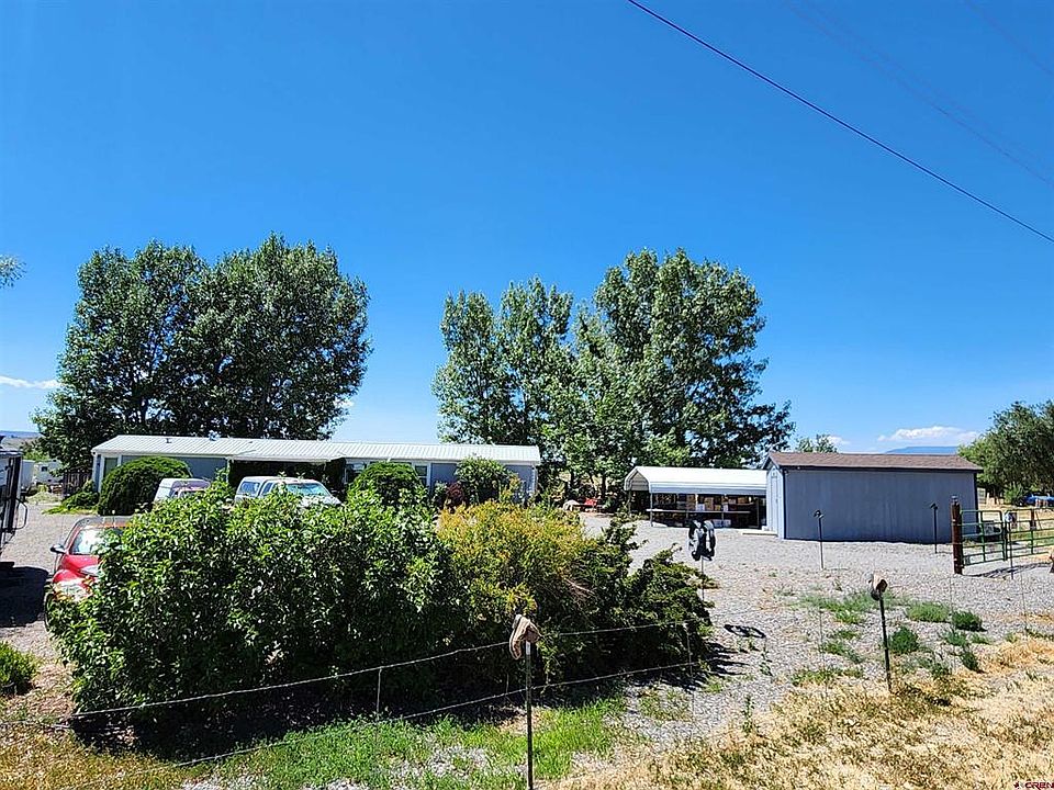 Need a place for your animals, Build a shop, Highway 50 visibility and Access for your Business? 6.4 Acres with 5 Shares of UVWUA Irrigation Water located 7 miles North of Montrose with No HOA or Covenants. This immaculate home features 3 bedroom, 2 bathroom, 1216 sqft. with pellet stove, new flooring, updated windows, metal roof, mature landscaping and old growth trees. The property includes 2 sheds, Carport, RV parking, Gazebo, 9.5 x 40 storage container, and fenced entry gate. Make this home yours today!