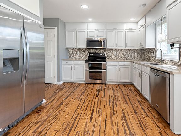 Updates, Open. Spacious, beautifully remodeled 2,790 sq. ft. home, located just minutes from top-rated Floyd County schools and community amenities! Enjoy the inviting great room, complete with a charming stone fireplace, that opens seamlessly to the kitchen—perfect for entertaining or family gatherings. You will love the Chef's Kitchen featuring Quartz countertops, designer backsplash, stainless steel appliances including a double oven, and gorgeous finishes, this kitchen is a dream come true for any home cook. Just off the Kitchen a new enormous deck with gazabo and swing. The updated primary suite features a spacious walk-in closet, a tiled walk-in shower with stunning glass accents, and a relaxing jetted tub—perfect for unwinding after a long day. The hall bath boasts attractive tile accents, providing both style and functionality. There are 2 other bedrooms, a full bath and laundry room on the 1st floor. Enjoy large windows throughout the home filling each room with natural light, creating a warm and welcoming atmosphere. Wait until you experience the Massive Lower-Level walkout Family Room with ample space for relaxation and play. There's a nice-sized bedroom and full bath (be sure to see the depth of the walk-in shower). The family room is also plumbed for a wet bar. There's easy access to the large, yard, It's ideal for outdoor activities. Be sure to notice the long and extra wide stamped edge driveway with ample parking for family and guests. With a newer roof shingles (4 years old), new garage door with opener, new front porch, walkway, backyard firepit (all stamped concrete) and all the updates you can move in knowing you have found your dream home. Remember you'll be just a stone's throw from a neighborhood park offering tennis courts, basketball, and 2 fishing lakes. This home truly has it all! Don't miss the chance to make it yours. Schedule a tour and experience everything this incredible property has to offer!
