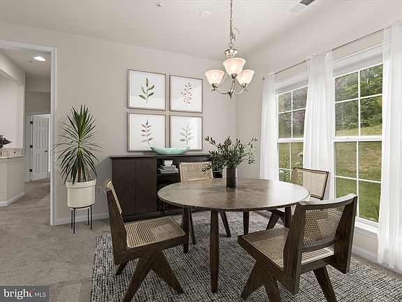 Discover the epitome of refined living in the sought-after Guilford Mews community, in this end unit villa! Embrace an active 55 and over lifestyle with a picturesque walking path and enjoy the community clubhouse boasting a kitchen, a spacious party room, and a covered patio available for event reservations. Nestled amidst stunning perennial landscaping and mature trees, this end unit home offers the perfect blend of privacy and natural beauty. Inside, find an array of features including three bedrooms, an upper-level loft, and a versatile bonus room. Entertain with ease in the separate dining room, while the expansive kitchen and living room area beckons for relaxation. Enjoy the convenience of 42-inch cabinetry, stylish granite counters, and a breakfast bar for casual dining. Retreat to the main level primary bedroom, complete with an abundance of natural light, an en-suite bath featuring a double vanity and a separate shower with seating, and a spacious walk-in closet.  Ascend to the upper level where you'll discover two additional bedrooms, a full bath, and a versatile bonus room ideal for a study or additional storage space. With convenient access to commuter routes such as US-1, I-95, and MD-32, this home offers both serenity and connectivity, ensuring a lifestyle of ease and comfort. Property Updates: Patio, custom blinds, ceiling fans, washer/dryer, and smoke detectors. Some photos have utilized virtual staging.
